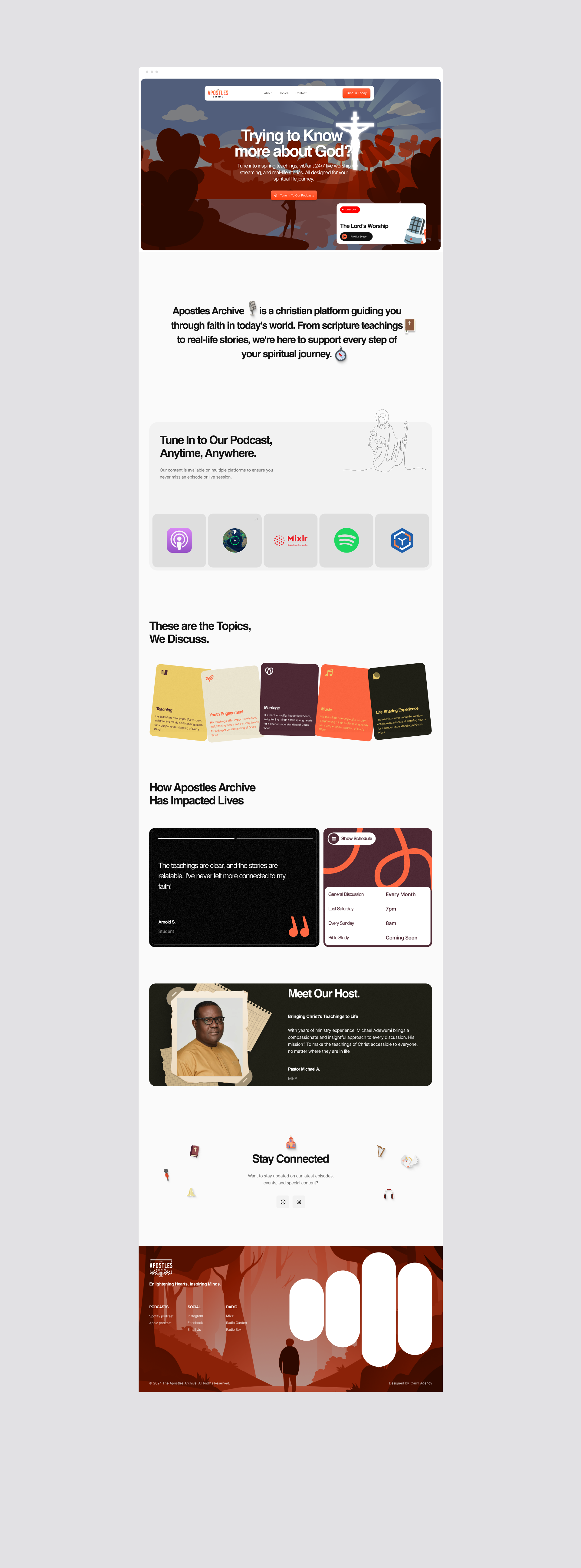 "Partnering with Carril Agency to bring Apostles Archive to life has been a remarkable journey. From the initial branding to the website launch and the integration of streaming services, their expertise has been invaluable."
