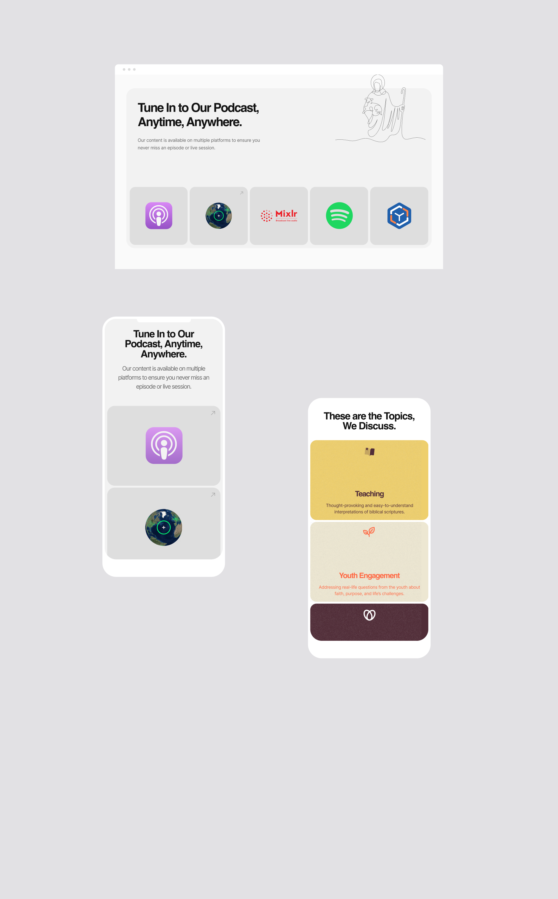 We developed a cohesive brand identity that reflects their values and message, ensuring consistency across all touchpoints. We then designed and built a user-friendly website that makes discovering episodes, topics, and resources simple and intuitive.